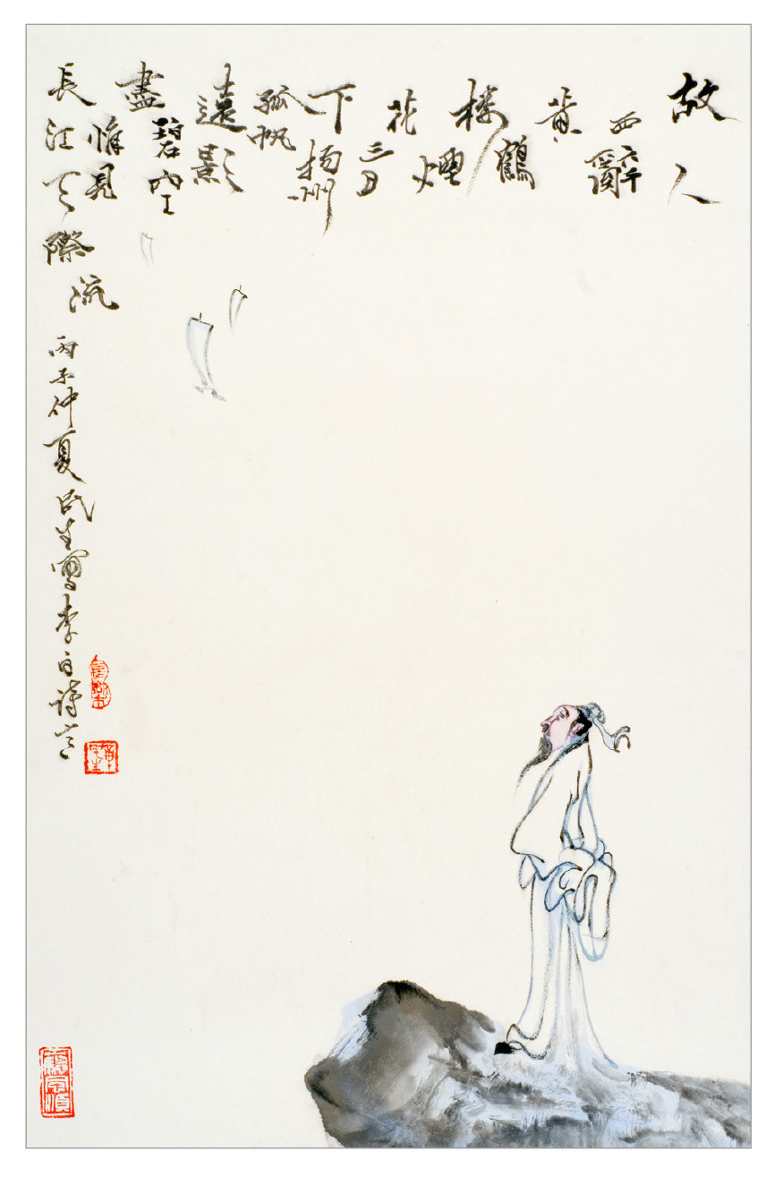 Discover how Chinese calligraphy is integrated as part of the poetic expression. It not only creates a kinetic and rhythmic texture to the aesthetics but also offers a narrative to frame the illustrated content.